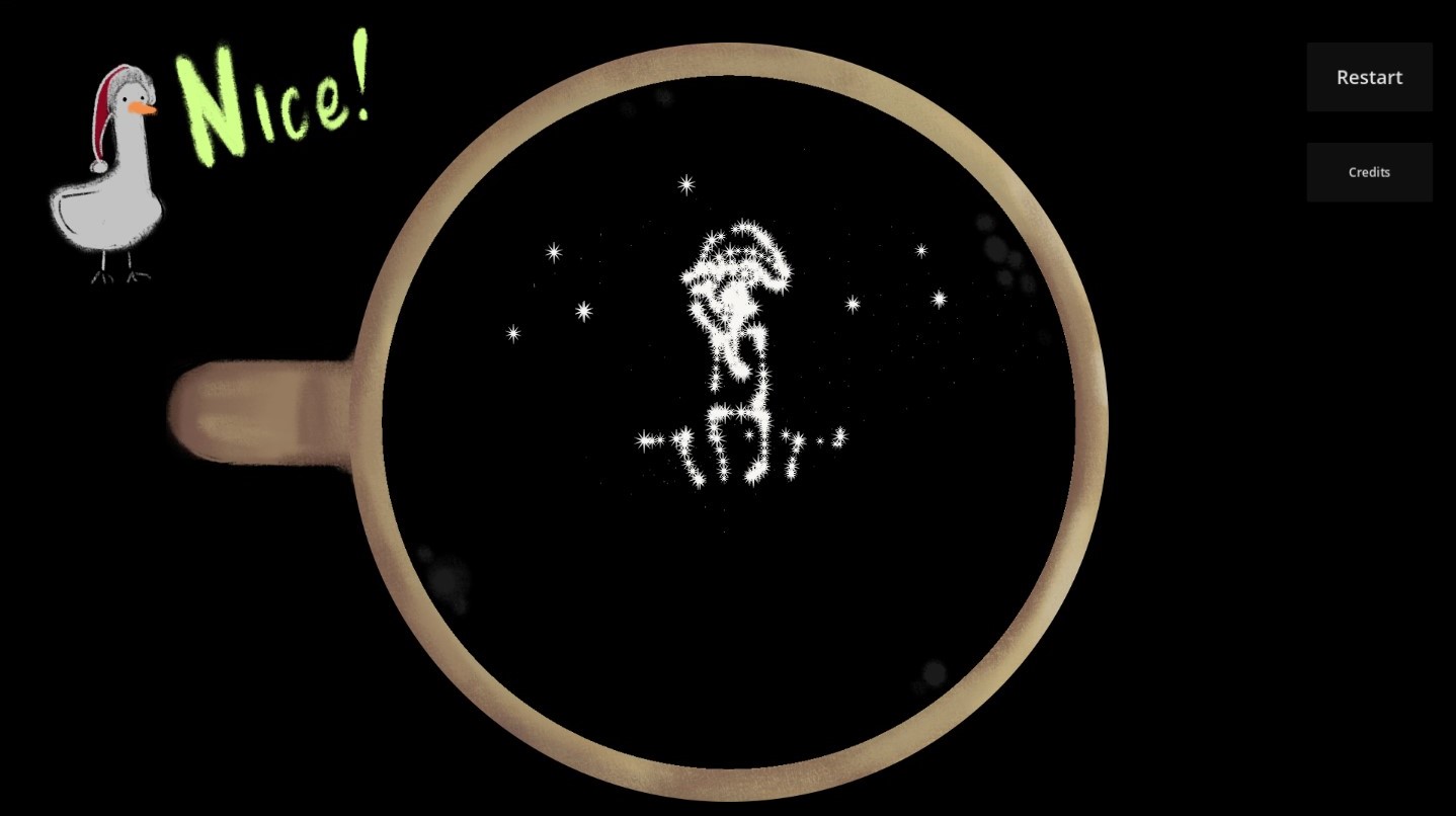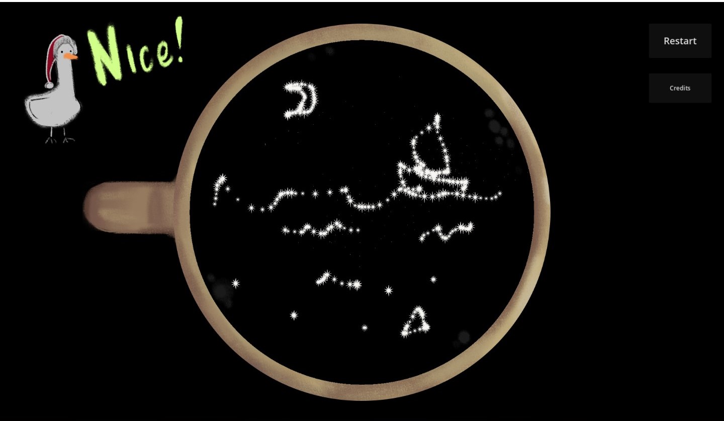 You're a kid on a family gathering for holidays. And you have unlimited tries to make latte art with stars. Have fun!
